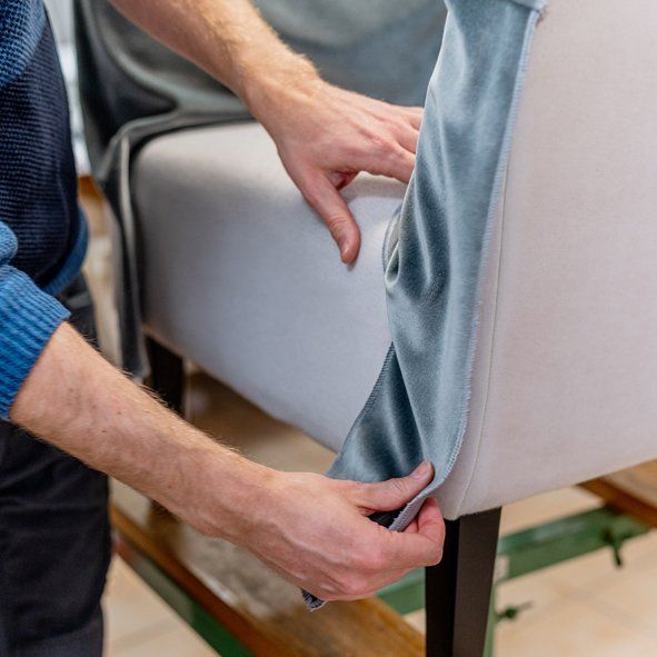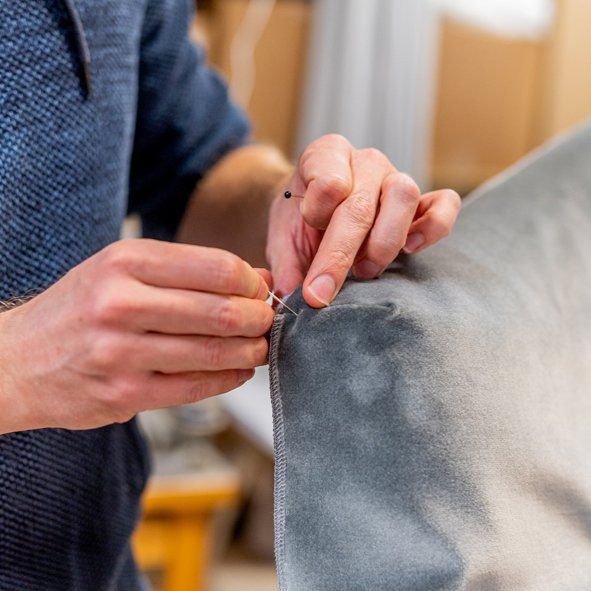 In unserer eigenen Polsterei in Pullach bei München werden hochwertige und edle Stoffe fachgerecht verarbeitet.